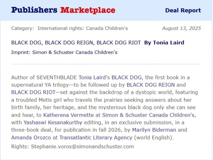 I am so excited to share that I am working on a supernatural, climate-dystopian YA (young adult) trilogy set in the Canadian prairies! Rights to BLACK DOG, BLACK DOG REIGN, and BLACK DOG RIOT were sold to sold to senior editor katherena vermette and children’s editor Yashaswi Kesanakurthy at Simon & Schuster Canada by my agents Marilyn Biderman and Amanda Orozco!
